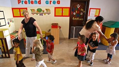 One of the big drawbacks of day care, for some parents, is the lack of one-on-one attention. "We put our 17-month-old daughter into nursery," says Victoria Abkik, an Abu Dhabi-based mother of two. "Partly because we didn't want her staying at home all day with the maid while I was at work." The regime lasted less than a week. "There were no fixed classes for her age group," she says. "There was just a big room with lots of toys. She's a happy child so she wasn't making a fuss and therefore didn't get much attention. I just thought what advantages is she getting here that she can't get at home?"