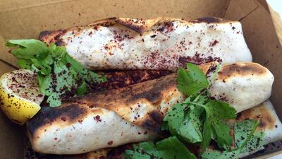 Five delicious, crispy flatbread rolls filled with chicken breast, red onion, pine nuts, organic Palestinian olive oil and sumac, baked in a wood-fired oven.