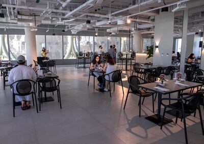 The interior is clean, modern and minimalistic, with neutral shades of grey and an exposed pipe ceiling, with geometric themed chair cushions adding a pop of colour, and a DJ spinning lively beats to add to the ambience.