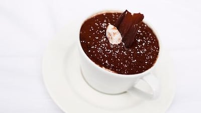 8. Remove the cling film, sprinkle with cocoa powder through a thin sieve, cut into eight squares and serve. Or, scoop into eight cups as shown, and serve.