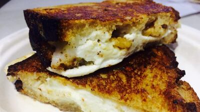 This British food truck is dishing up three grilled cheese sandwiches at Eat the World, along with cheesy, truffled fries with rosemary as a side. I went for the French goat’s cheese sandwich with honey, walnuts and rosemary butter. While it’s a bit on the thin side, this sandwich is big on flavour. The rich goat’s cheese — which doesn’t messily melt the way cheddar might — strikes a perfect balance with the sweet, salty, crunchy combination of the honey and walnuts. One of my favourite bites of the night. Dh40