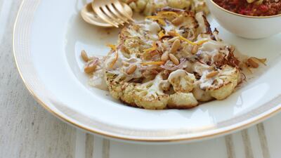 Even vegetarians like to feel full, Husseini says. “I always offer something as satisfying to my vegetarian and vegan guests as my meat-eating diners, such as my roasted cauliflower steak with citrus tahini sauce, so everyone leaves the table happy.