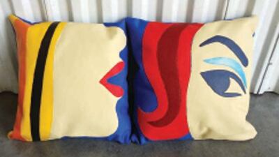 Iqbal's cushions reveal her love of colour and pop art motifs.