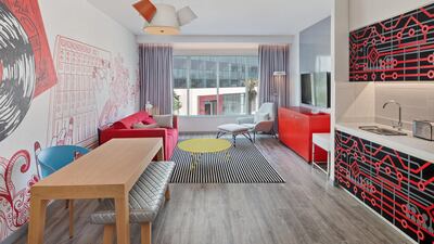 You'll get free Wi-Fi, access to a rooftop pool, 24-hour gym and 20 per cent off on food and drinks at Ouibar + Terrace and the Red Roof. The apartments feature modern interiors, with custom-made wallpaper inspired by UAE artists. The hotel is also pet-friendly, meaning your furry friends can join in the fun.