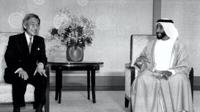 It was in January 1989 when Akihito first ascended the throne. The following year, on May 13, 1990, he met with Sheikh Zayed, the Founding Father, as pictured here. The UAE leader flew out to Tokyo, to meet the emperor at the Imperial Palace. It marked a milestone in relations between the two nations, which continue to strengthen to this day.