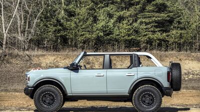 In little under an hour, one person can remove the three-piece roof and unclip the doors of the Bronco, or leave the rear portion of the roof in place and enjoy a targa-style arrangement. If the lack of doors is a concern, there’s also optional safety bars that can be clipped into place that’s effectively a door without its outer skin.