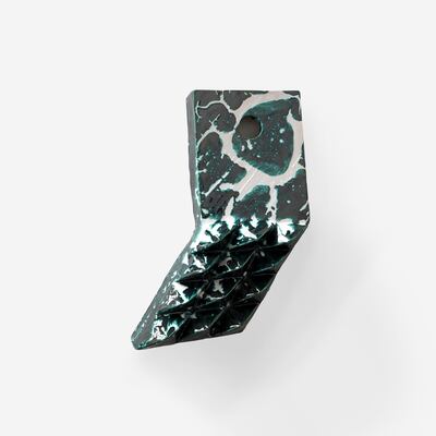 Carbon 12 presents We Love Them All by German artist Michael Sailstorfer, who continues his mask series with mottled and marbled ceramic works that nod to Oceanic and African art. His work draws on both primitive and futuristic themes. Pictured: MC8