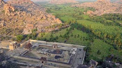Today, it’s hard to think of another sight in India this significant yet still relatively little-­known or visited. Although ­Hampi became a Unesco World Heritage Site in 1986, tourism hardly noticed. Rolling up here in 1989, I marvelled at Hampi’s curious emptiness and picturesque setting. Watered by the meandering Tungabhadra River, Hampi’s ruins stand amid low granite hills and outcrops dotted with surreal, house-sized boulders. Between them stretch dense plots of banana trees and sugar cane still cultivated by local villagers. It’s a landscape further softened and greened during the monsoon.