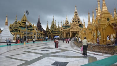 We look around the large Central Market, which dates from 1926 and sells mostly fabric, clothing and gems. I buy a couple of ready-made longyis for 7,000 kyats each (Dh3 is worth 1,000 kyats), before heading to the city's most popular attraction, the Shwedagon Pagoda, which covers 46 hectares of land north of the downtown area. A 100-metre-high gold-plated stupa surrounded by smaller pagodas, it's the most sacred Buddhist site in Myanmar, a country where 89 per cent of the population follow its Theravada school.
