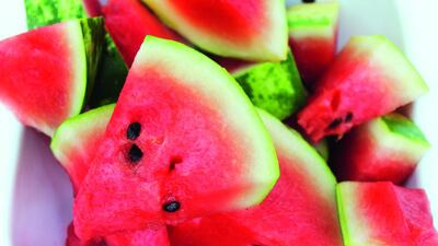 91.5% Many people enjoy watermelon for its sweet, refreshing taste, but it has other qualities, too. As a source of vitamin A, it can be good for your skin, while the water and fibre content helps with digestion. Like tomatoes, it is a good source of vitamin C.