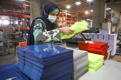 Oriental Paper Products, a stationery factory in Fanar, Lebanon. Some machinery now sits idle and shifts have been reduced.