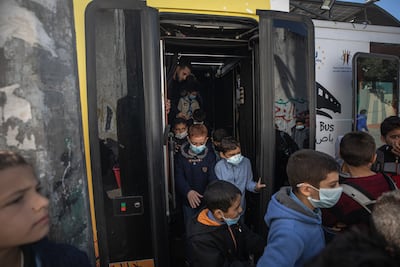 Palestinian children watch a film inside a cinema bus in Gaza city. Conflict led to the closure of all the territory's cinemas during the first Palestinian intifada of 1987. The last show in a cinema was screened 24 years ago. Recently however, a special cinema bus was set up and is once again giving Gaza residents the chance to experience the feeling of going to the movies.