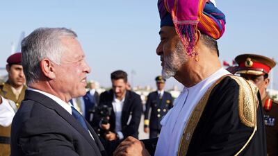 Jordan’s King Abdullah II and Sultan Haitham bin Tariq discussed regional crises in talks in Oman on Tuesday.