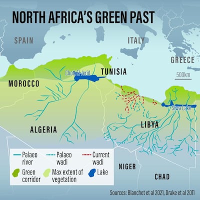 For some time scientists have known, through cave art and other archaeological evidence, that humans lived and thrived in what is now the desert. They had also theorised that extinct rivers and streams crisscrossed parts of present-day Libya, Tunisia and Algeria. But until now there had been little way of knowing exactly when and why these rivers began to flow. The muddy sediments pulled up from the Mediterranean sea floor would provide answers.