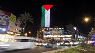 In Baghdad’s Sunni district of Al Adhamiyah, a long banner decorated the clock tower of Abu Hanifa Mosque, reading: “Al Aqsa Flood”, the name of Saturday's operation from Hamas.