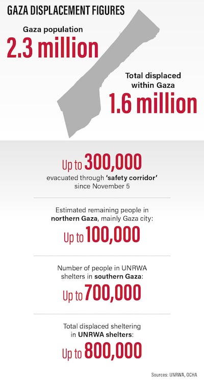 More than 1.5 million people have been internally displaced in Gaza, with most having fled to the south, where food, water and electricity are becoming increasingly scarce.