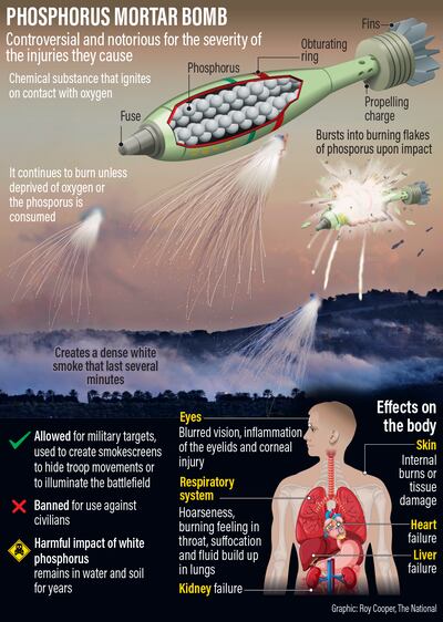 He told The National that “the impact of white phosphorus exposure varies depending on the site of contact with the chemical”, as well as pre-existing conditions, such as asthma.