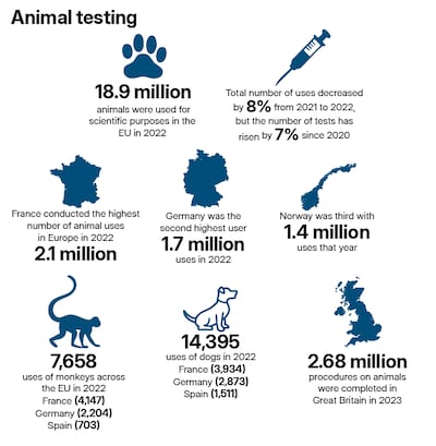 A significant number of animals continue to be used for testing, with Humane Society International saying that more than 115 million are used in labs around the world each year.