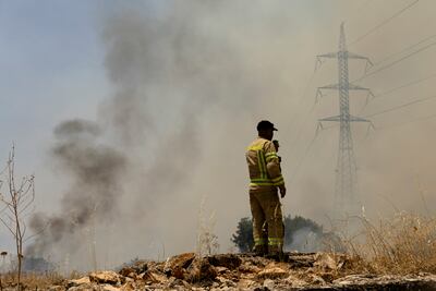 Mr Shelef says the fires come at a particularly difficult time for his teams. “Hezbollah knows exactly what it’s doing. They launch weapons towards areas where there is cattle and hay. There was lots of rain this year so we have a lot of hay,” he said.
