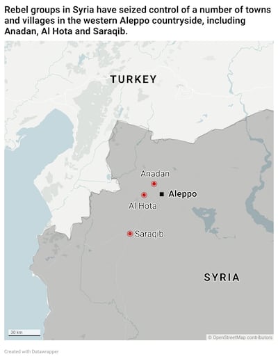 The rapidly advancing troops of extremist group Hayat Tahrir launched the offensive, which they called Deterring the Aggression, late on Wednesday, moving towards Aleppo city from Idlib, home to about two million people displaced from civil-war fighting since 2011.
