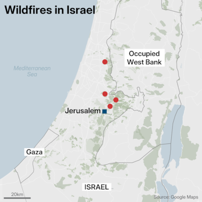 The Palestinian Authority, which governs parts of the occupied West Bank, offered to help in the firefighting effort, as has happened in previous instances. Many of the affected areas border Palestinian territory, where an Israeli military presence and a lack of resources could hamper any emergency response.