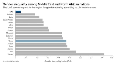 The UAE has been ranked highest in the Arab region for gender equality, in the UN's Gender Inequality Index (GII).