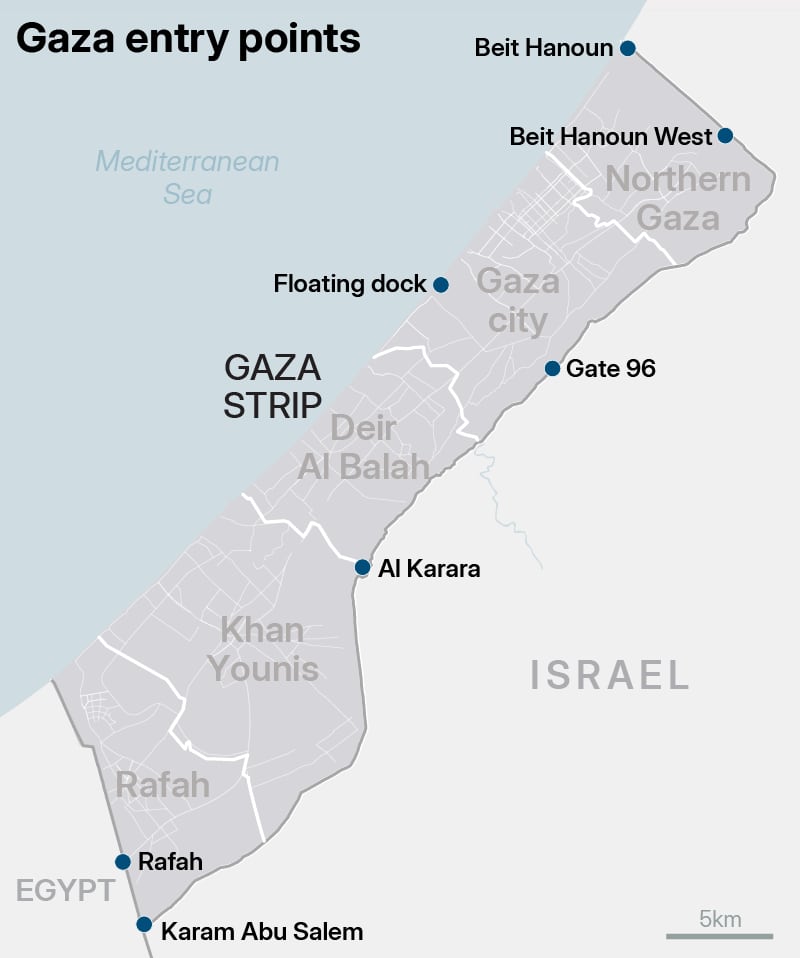 There are several other entry points into Gaza, but aid has not been flowing into Gaza at the rate required and mandated by the ceasefire agreement. Israel has also made it difficult for already registered and operational aid groups to bring in assistance for the enclave's 2.2 million people.