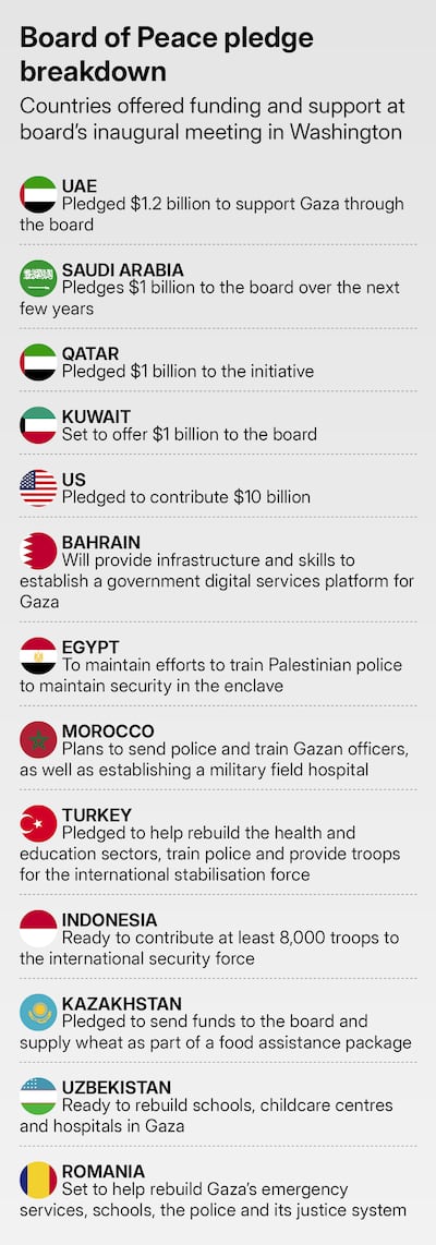 Led by Mr Trump, the board is responsible for overseeing the second phase of a fragile ceasefire. Plans for phase two include disarming Hamas and rebuilding Gaza from the rubble of Israel's two-year war. The UN has estimated about $70 billion will be needed for reconstruction in the enclave.