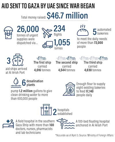 Two hospitals have also been established as part of the UAE's programme to help those in need in Gaza, including one with a centre for amputees to provide prosthetic limbs to Palestinians wounded during the war.
