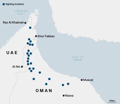 W arabica appears to live only in the Hajar mountains of the UAE and Oman, and has not been observed in the Musandam peninsula, where the different weathering pattern of the mountains means that surface water and streams, which create habitats that the spider likes, are much more rare. Mr Feulner said they could be “relatively abundant” in suitable habitats.