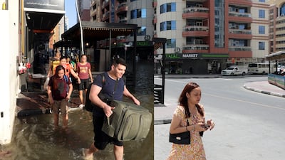 In these photographs, taken by Chris Whiteoak, floodwater subsides in Al Barsha, Dubai.