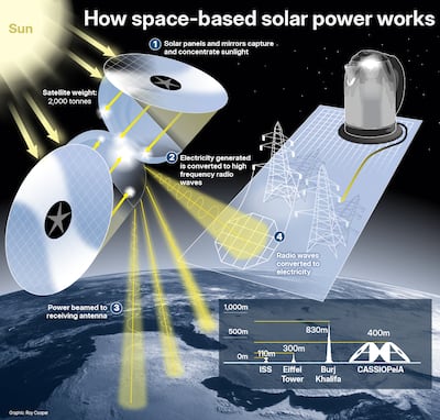 Martin Soltau, Space Solar's joint chief executive, told The National the technology promises an “economic revolution” as the world strives to move towards its goals of net zero emissions, in an accelerated time frame that has raised questions about reliable sources of power to keep the lights on.