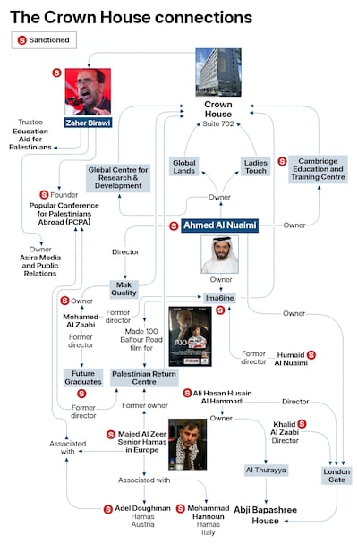 A statement from the US Treasury in January alleges “strategic and tactical aspects of the PCPA’s activity are controlled by Hamas through the placement of key Hamas-linked figures in major positions throughout the organisation”, including another person linked to Crown House, Majid Al Zeer.