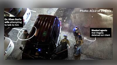 According to the American Civil Liberties Union of Virginia, which obtained the video and is assisting with the Georgetown researcher's legal defence, Mr Suri was transferred to five different immigration and customs enforcement (ICE) facilities across three states over the course of just four days. "For almost two weeks, he was housed in a room without a bed and with a television blaring 21 hours a day," read a press release from the ACLU.