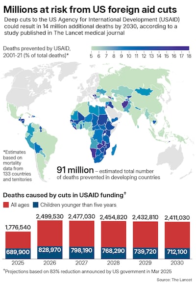 The Lancet, which analysed data from 133 low and middle-income countries from 2001 to 2023, estimates that USAID-funded programmes helped to prevent more than 91 million deaths over the past two decades, including 30 million among children.