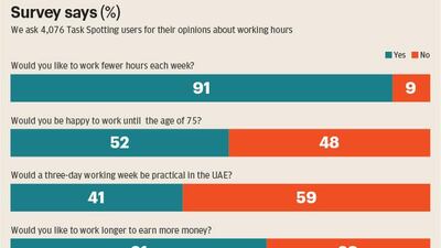 We asked Task Spotting users in the UAE for their opinion about working hours. To participate in The National's surveys, download the Task Spotting app today. What is Task Spotting? Click here