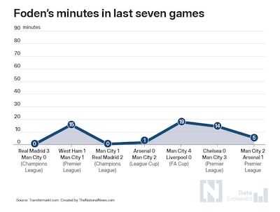 There were just five minutes of normal time remaining when Phil Foden appeared off the bench on Sunday, while the previous six matches across all competitions had seen the “Stockport Iniesta” average just eight minutes of game time.