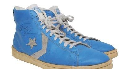 A pair of sneakers allegedly worn by NBA legend Michael Jordan when he played basketball at the University of North Carolina sold for US $33,387 (Dh121,194) on Thursday, US media reported.
