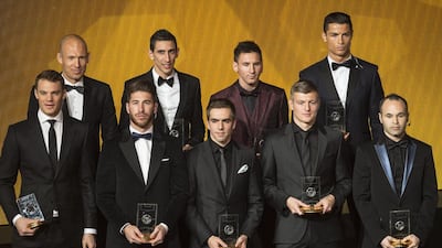 Images from Monday night's Fifa Ballon d'Or awards ceremony in Zurich, Switzerland, where Cristiano Ronaldo won his second successive World Player of the Year award, Germany coach Joachim Loew was named Coach of the Year, Ronaldo's Real Madrid teammate James Rodriguez won the award for Goal of the Year, and Wolfsburg's Nadine Kessler won the Women's World Player of the Year award. Click the arrows above to scroll through the photos.