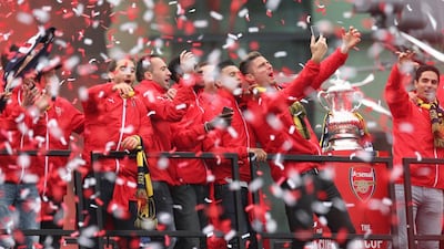 Arsenal manager Arsene Wenger and his squad rode an open top bus during the Arsenal victory parade in London on Sunday, following their win in the English FA Cup final on Saturday against Aston Villa.
