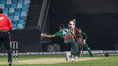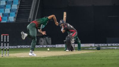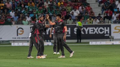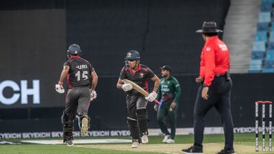 Having reached 20 for one off four in reply, a thunderstorm disrupted play. When they returned to the field, UAE required 66 from 11 overs, but they fell short.