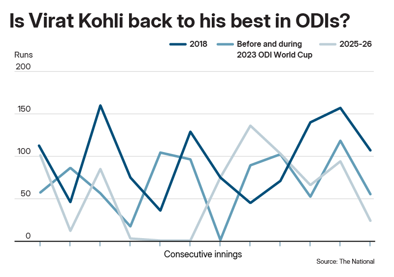 Is Kohli reaching that level again? We may not know for sure. Simply because ODIs are disappearing fast from international cricket. Full-fledged T20 series have taken precedence for all international boards as that is what bankrolls the system. Test series are now reduced to the bare minimum two matches. ODIs have to find a way between those two formats.