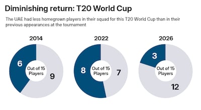 Given all that, the composition of the national team had been tracking the way that might be expected. When the UAE played at the 2014 T20 World Cup, in Bangladesh, six of the 15 players were home-produced.