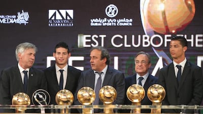 Images from the 2014 Dubai Football Gala & Globe Soccer Awards ceremony on Monday, where Cristiano Ronaldo was named player of the year, James Rodriguez won revelation player of the year, Carlo Ancelotti won manager of the year and Real Madrid were given the award for club of the year. Click the arrows above to scroll through the pictures.