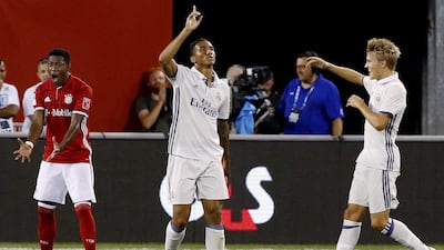 Images from Real Madrid-s 1-0 win over Bayern Munich on Wednesday night at the home of the NFL’s New York Giants and Jets.