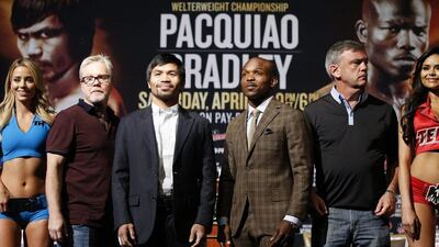 Granted, Bradley is still not considered a truly marquee name, but he is undoubtedly talented. Ranked in the top 10 of Ring Magazine’s pound-for-pound list for the past few years, Bradley can box or brawl, has a sharp skill set, guts and speed — a tricky opponent and a former world champion. While not particularly great at any one facet, he has no obvious weaknesses with a solitary defeat from 33 professional bouts. Tellingly, Bradley offers a sterner test than the one Pacquiao faced in 2012 and 2014. His switch to trainer Teddy Atlas makes him more dangerous, underlined by November’s ninth-round knockout of Brandon Rios. Some have questioned Bradley’s desire, but he is on record saying he wants to be remembered for taking out an icon.