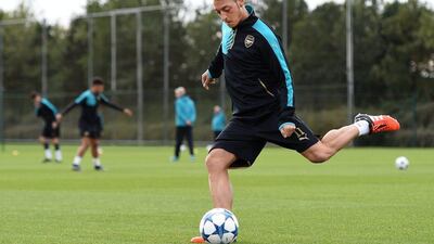 Images from Arsenal's training session on Monday ahead of Tuesday night's contest with Olympiakos in the Champions League. Click the arrows below to scroll through the photos.