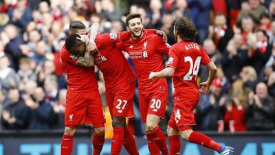 Images from Liverpool's 4-1 win over Stoke City in the Premier League on Sunday, as Divock Origi scored twice to go with first-half strikes by Alberto Moreno and Daniel Sturridge.