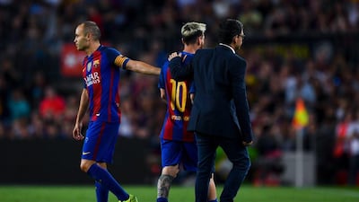 Images from Barcelona's 1-1 draw with Atletico Madrid on Wednesday night, as Ivan Rakitic put Barca ahead in the first half before Lionel Messi went down with injury in the second half and Angel Correa found an equaliser for the visitors.