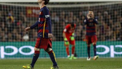 Images from Barcelona's 2-1 loss to Valencia on Sunday as the visitors to the Camp Nou went 2-0 ahead before Lionel Messi struck back, but it was too little too late and now the once treble-seeking giants are level on points in La Liga with Atletico Madrid.